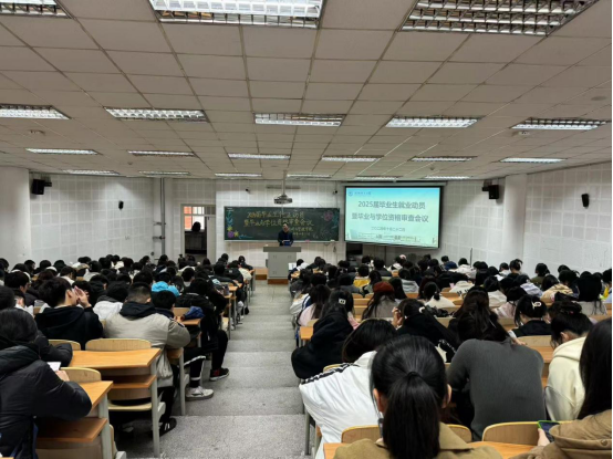 会上,孟丽老师围绕学校教务处关于确定2025届毕业生毕业与学位审查标准的通知,结合《千亿国际网页版登录教学培养方案》 、《千亿国际网页版登录学分制学籍管理办法》和《千亿国际网页版登录本科生学士学位授予工作有关规定》文件内容,向2025届本科生毕业生同学强调各专业的毕业条件与学位审查标准,并督促同学们利用网上办事大厅按时完成毕业与学位审查。