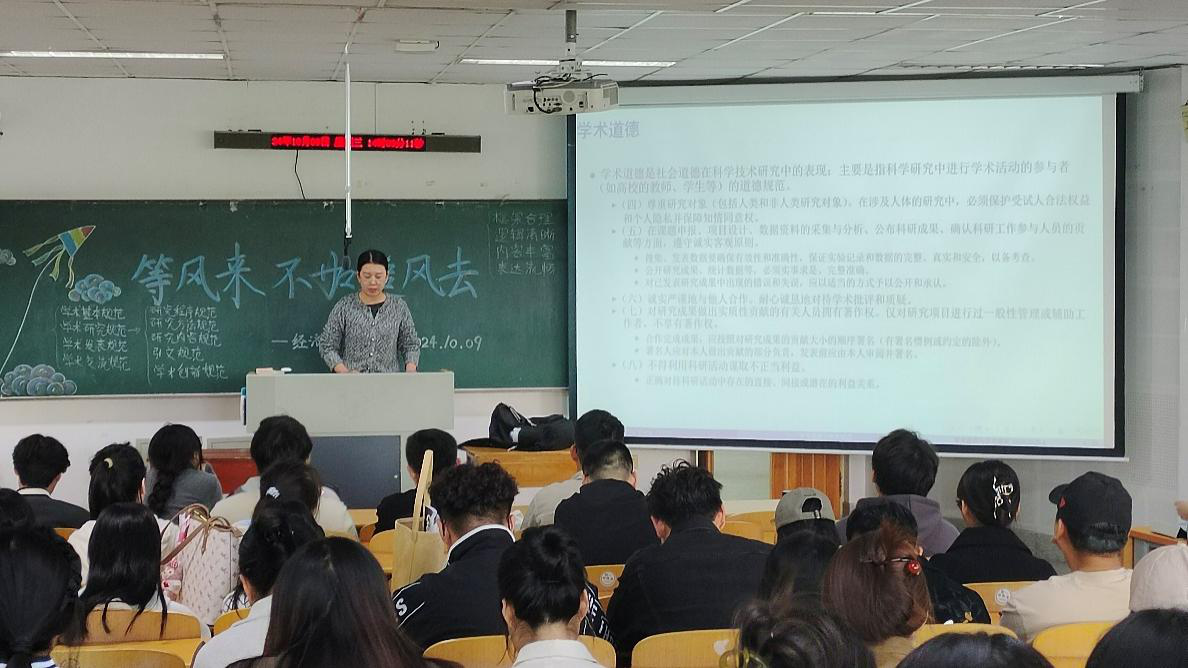 为做好研究生新生学术道德与规范的教育工作,引导他们树立正确的学术道德观念,千亿国际网页版登录于10月9日举办了学术道德与规范专题讲座。讲座由研究生辅导员刘璐主持,员工王颖主讲,千亿国际网页版登录2024级全体研究生新生参加。