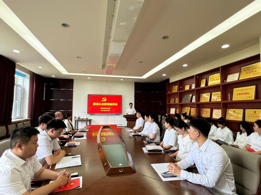 为进一步推进党纪学习教育走深走实,充分认识加强党的纪律建设的极端重要性,持续增强开展党纪学习教育的积极性和主动性,在2024届毕业生党员同学即将离开校园走上工作岗位之际,千亿国际网页版登录本科生党支部于6月14日在通明楼329会议室开展“廉洁从业教育”主题党日活动。千亿国际网页版登录党委李丙文书记、组织员信莹参加座谈,活动由支部书记刘伟主持。