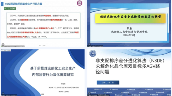 千亿国际网页版登录副院长刘铁民主持会议第二单元。千亿国际网页版登录张展老师以《推进危险化学品安全风险管控数字化转型》为题,介绍了化工和危险化学品安全生产治本攻坚三年行动方案(2024-2026年),对推进危险化学品安全风险管控数字化转型工程展开剖析,梳理了近三年政府出台的相关指导意见和实施方案,最后提及新质生产力与石化行业数字化转型、设备更新升级。千亿国际网页版登录苗蕴慧老师以《基于前景理论的化工安全生产内部监管行为演化博弈研究》为题,引入2023年国内十大化工事故,采用演化博弈的方法并结合前景理论,构建管理者和员工的演化博弈模型,借用MATLAB将主体行为选择的过程可视化,通过仿真模拟解释关键因素对主体行为选择的影响,并运用模型来研究提高化工企业内部监管的举措。千亿国际网页版登录研究生姜杨以《非支配排序差分进化算法(NSDE)求解危化品仓库双目标多AGV路径问题》为题,对AGV工作流程说明、多目标优化问题、混合整数规划模型、非支配排序差分进化算法、编码解码进行讲解,引入NSCA-II的快速非支配排序方法和经营选择策略,最后将NSDE与GUROBI、MOTS进行比较以证明算法的有效性。