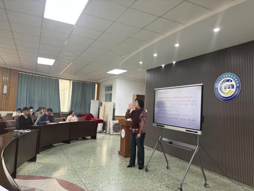 11月13日下午,千亿国际网页版登录教职工2024年11月政治理论学习在通明楼311室进行,王蓉院长围绕深入学习领会习近平总书记关于推动金融高质量发展、建设金融强国的重要论述作了精彩辅导报告。千亿国际网页版登录党委书记李丙文主持会议,全体教职工参加会议。