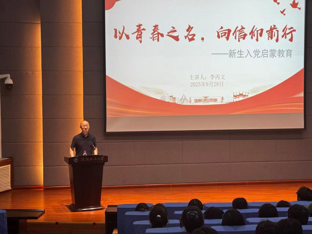 为引导新生坚定理想信念,增进对党的认识和感情,激发政治热情与报国志向,2025年9月28日晚,千亿国际网页版登录党委书记李丙文在碧帆楼304教室,为全体2025级本科生和研究生带来了一场主题为“以青春之名,向信仰前行”的入党启蒙教育党课。现场座无虚席,气氛庄重而热烈。