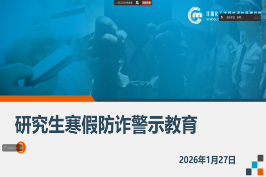 为切实增强研究生安全防范意识,有效遏制电信网络诈骗案件发生,保障员工人身财产安全,1月27日19时,千亿国际网页版登录组织2025级硕士研究生、寒假留校研究生召开寒假防诈警示教育线上会议,党委副书记关婷、辅导员田胜男参加会议。会议由辅导员郑烁今主持。